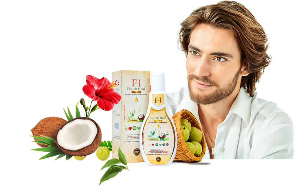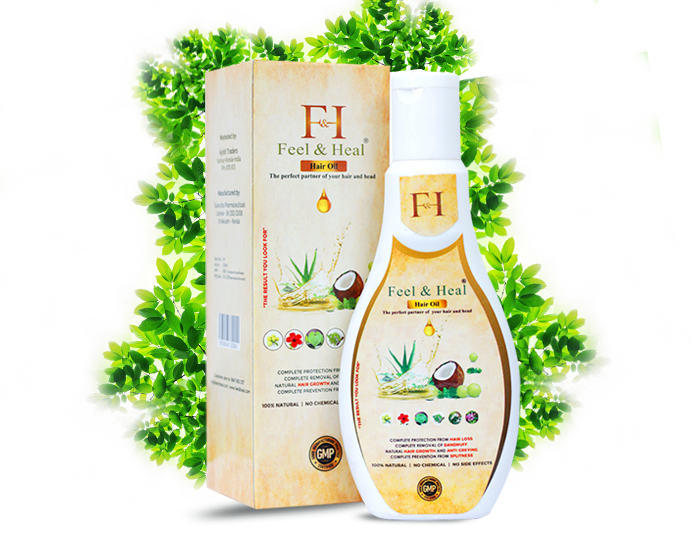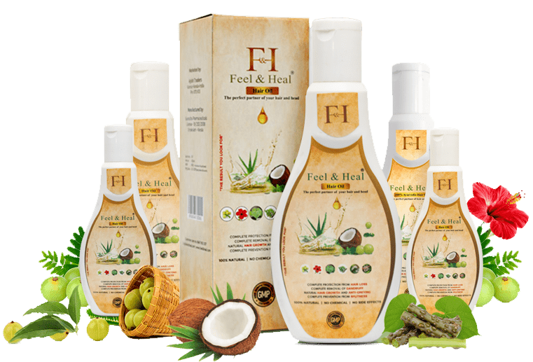 Feel & Heal Ayurvedic oil can treat hair problems in both men and women. The Ayurvedic hair oil is effective in curing male pattern baldness, premature graying, alopecia, and receding hairlines. It controls hair fall, regrows hair on the balding patches and makes hair thick, strong and shiny.